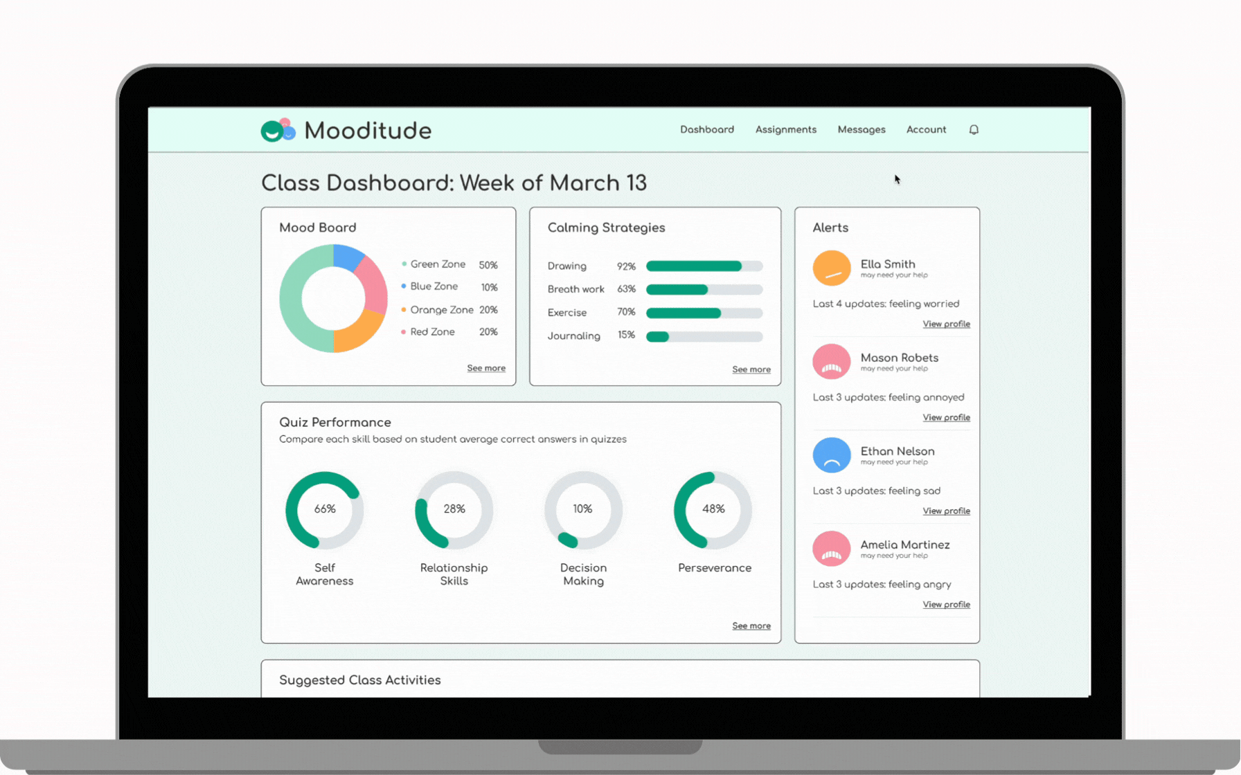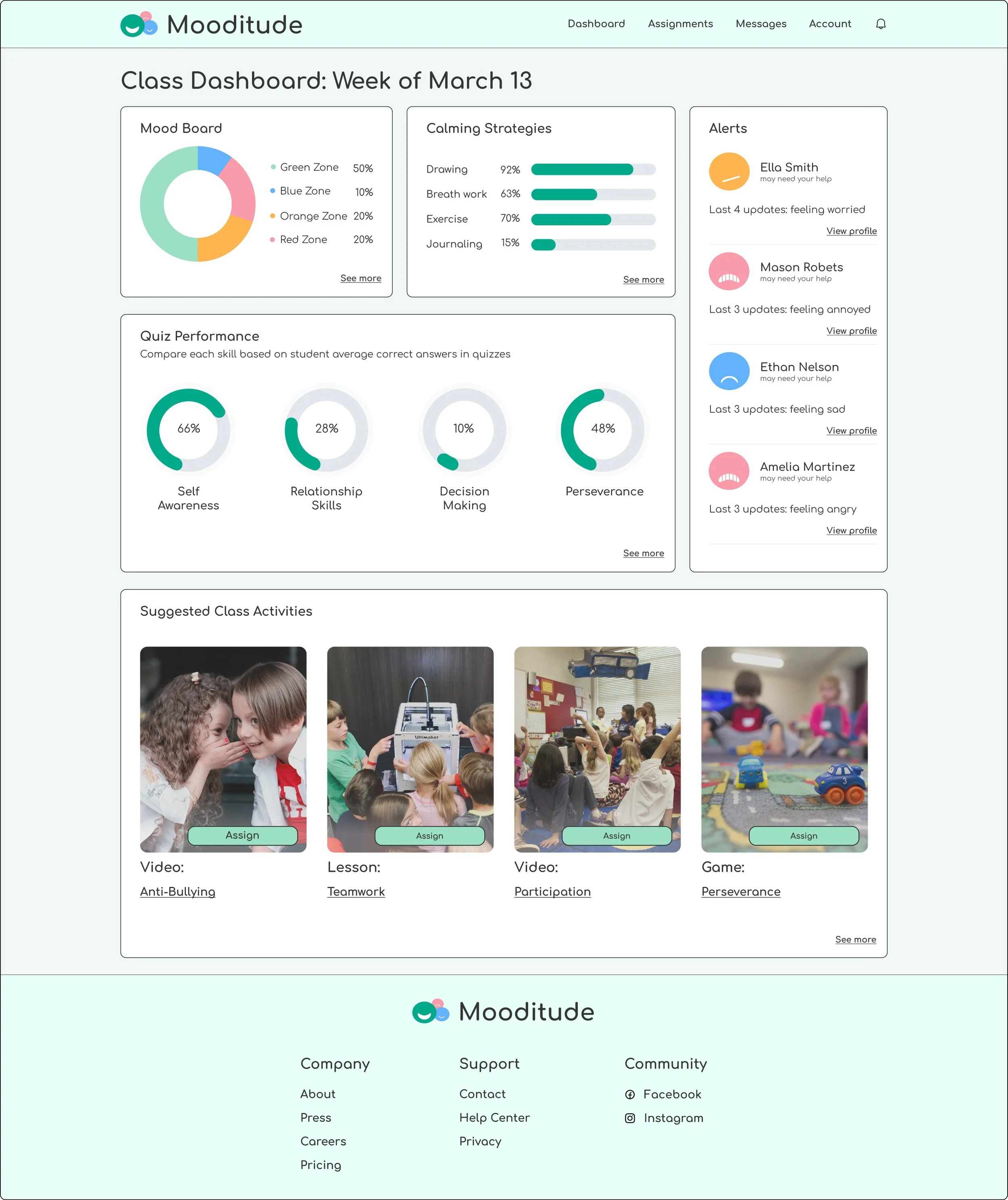 Placed the detailed Class Mood Board report at the top of the screen to give teachers a quick overview of how their class is feeling.