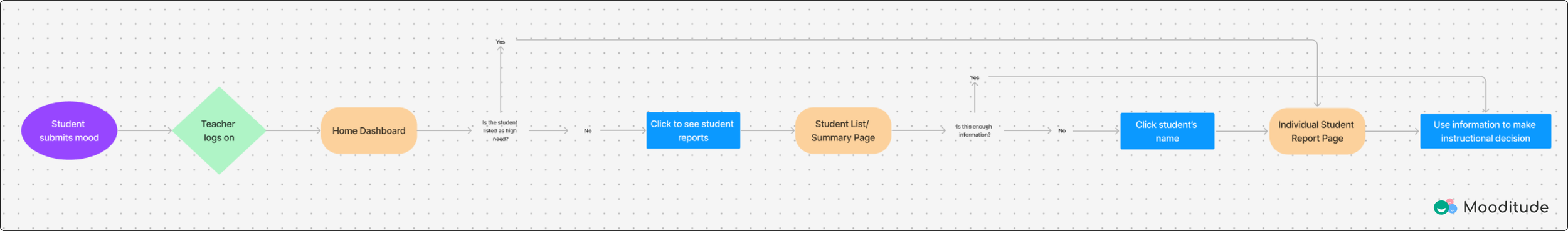 Mooditude is a program designed to give teachers an easier way to support their students' diverse social and emotional needs. In today’s classrooms, teachers are expected to go far beyond teaching the curriculum. With more students struggling to regulate their emotions, learning can often take a backseat to these challenges. Research shows that students in a positive emotional state are better equipped to solve problems, focus, and retain information, leading to improved academic performance. By equipping teachers with tools to help students manage their emotions, Mooditude not only fosters emotional well-being but also lays the foundation for greater student achievement and long-term success.