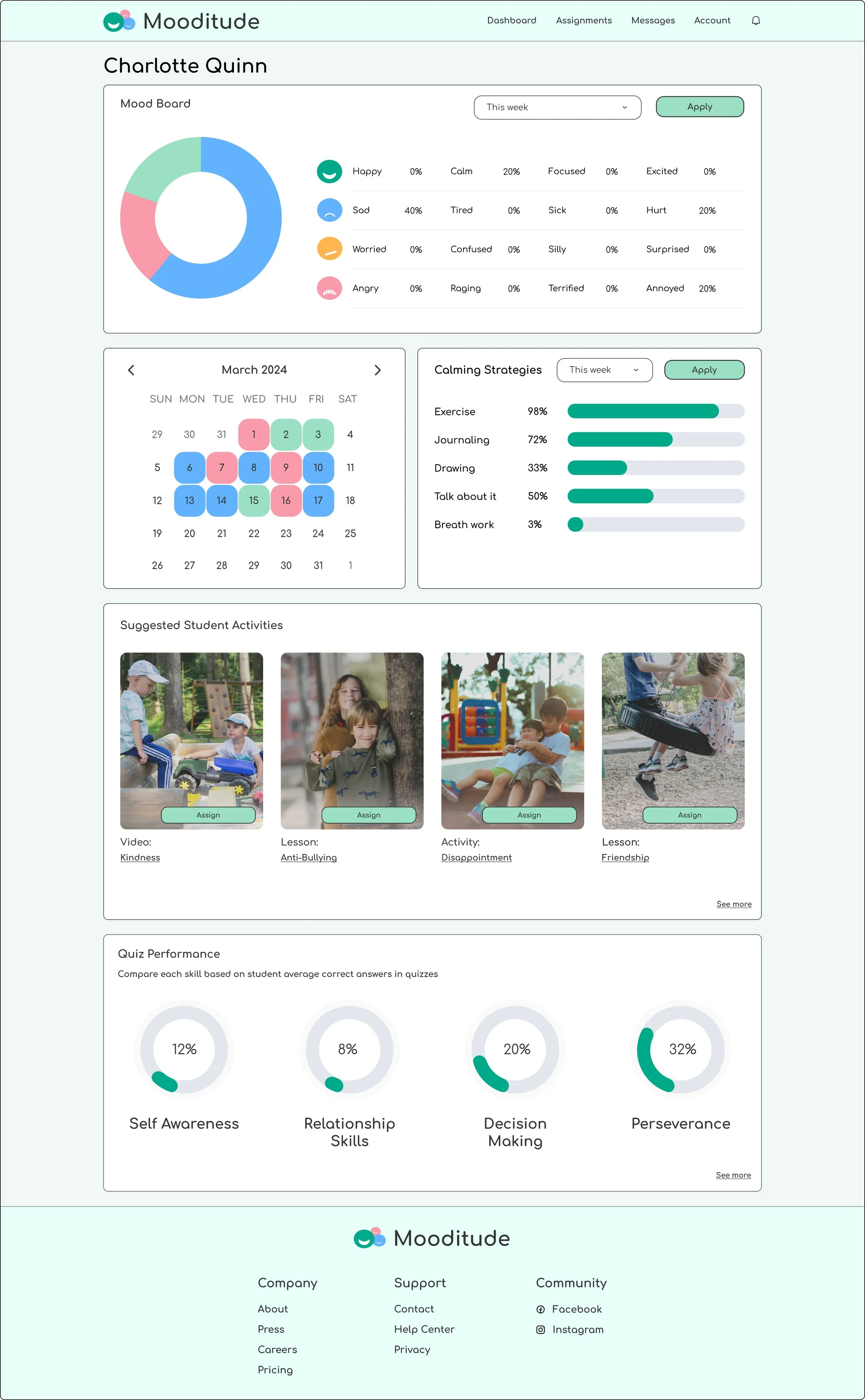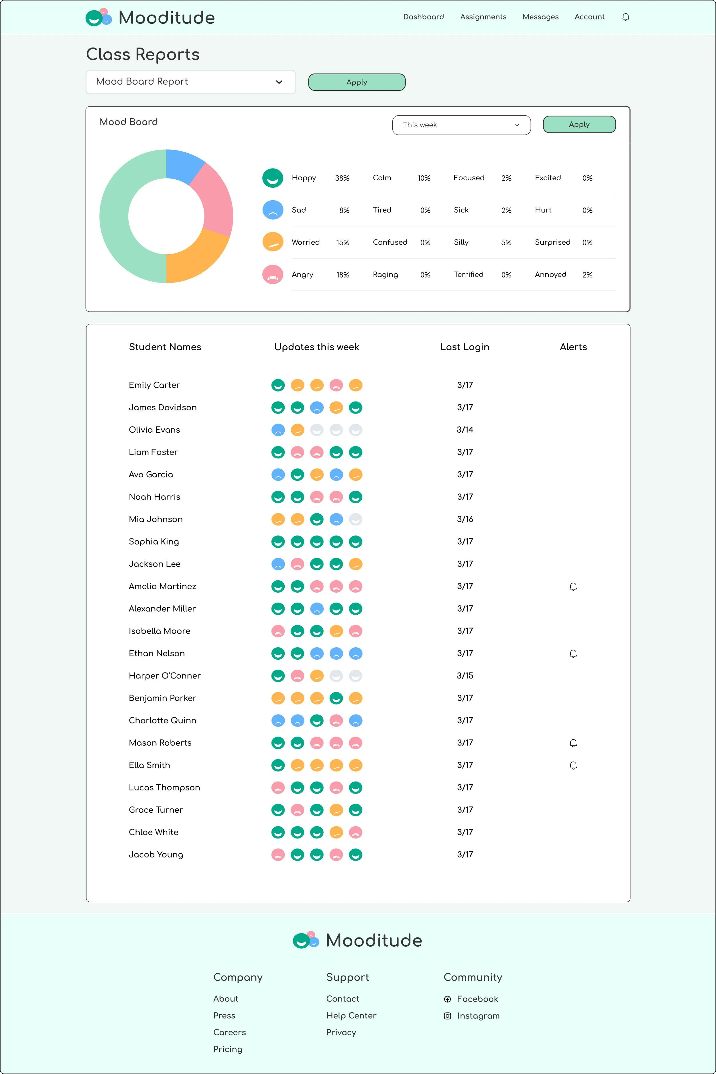 Placed a detailed Individual Mood Board at the top of the screen so teachers can quickly assess how an individual student has been feeling.