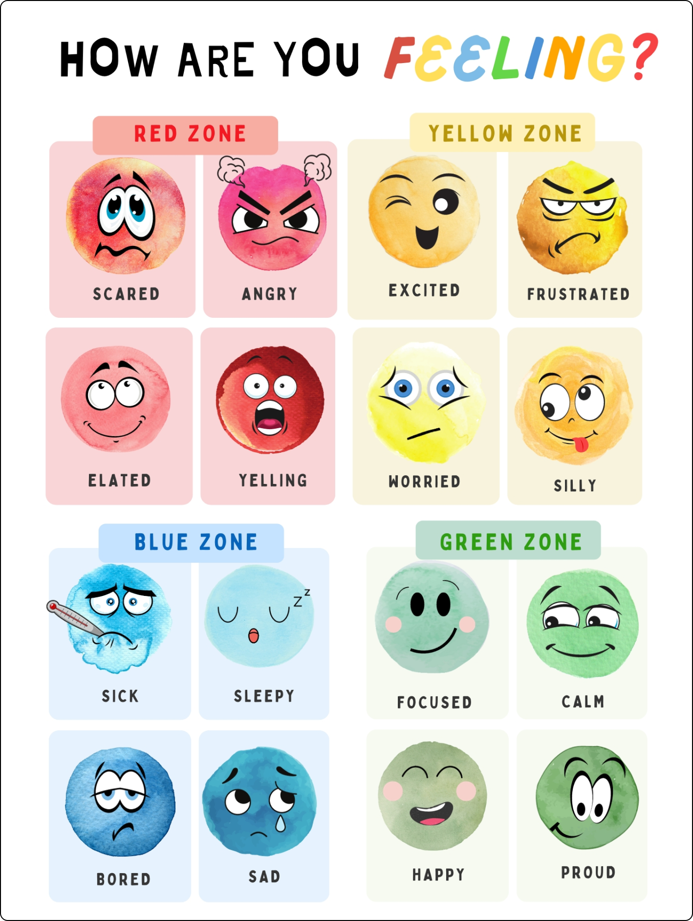 Utilized ‘Zones of Regulation’ colors and emotions that many teachers and students are familiar with to help regulate emotions.